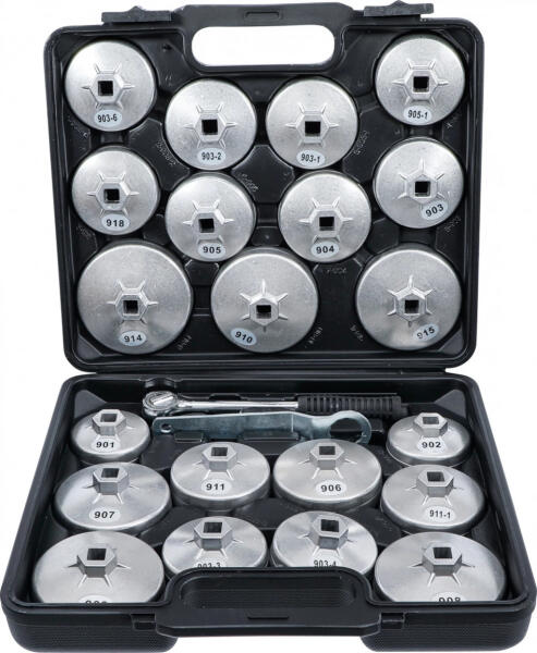 BGS DIY Set chei filtru de ulei | aluminiu turnat sub presiune | 12, 5 mm (1/2") | 23 piese (BGS 1035)