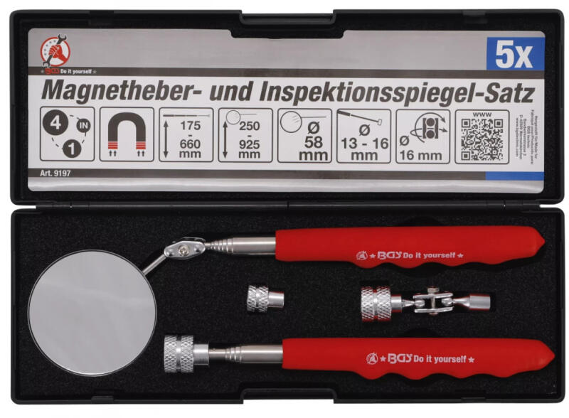 BGS DIY Set dispozitiv magnetic de ridicat şi oglindă de inspecţie | 4 piese (BGS 9197)