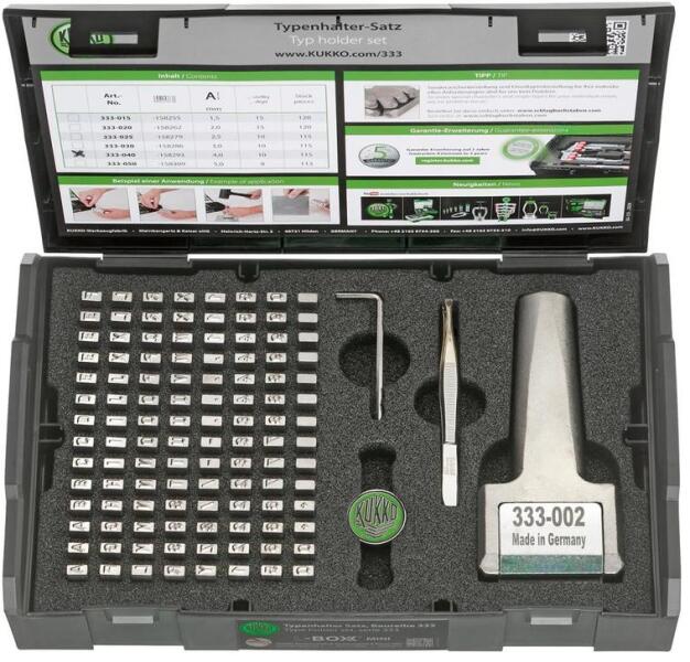 Caracteristici suplimentareOtel special pentru scule nichelatMai multe tipuri pot fi utilizate unul langa altul in suportTipurile sunt blocate in suport cu ajutorul unui surub de fixare Livrare In L-BOXX MINI. Continut numere de ritm 0-9 litere de ritm A-Z caractere speciale si-. Penseta tip suport tip gol